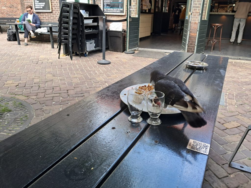 Den Ölzweig im Schnabel! Nicht mein Essen vom Teller fressend! Und anschließend auf meinen Stuhl